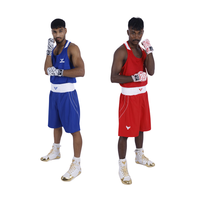 Men’s amateur boxing set sports / Athletic wear and regular fit. Model Description : The model's height is 5'8''.having waist 26" and wearing small size.