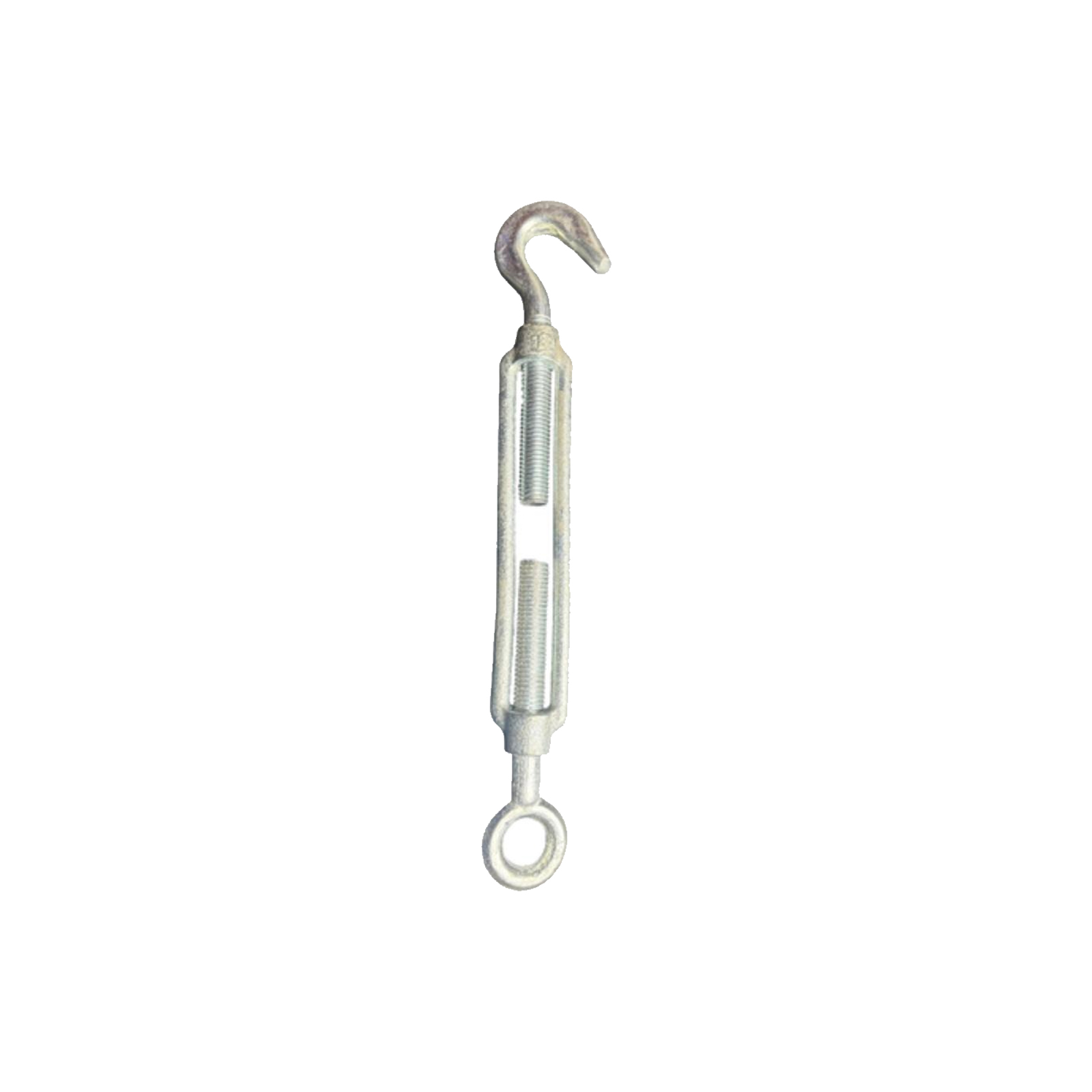 • Design and Components: A standard turnbuckle consists of a metal frame (often a long, threaded rod with an open center) with hooks or eyelets at each end.